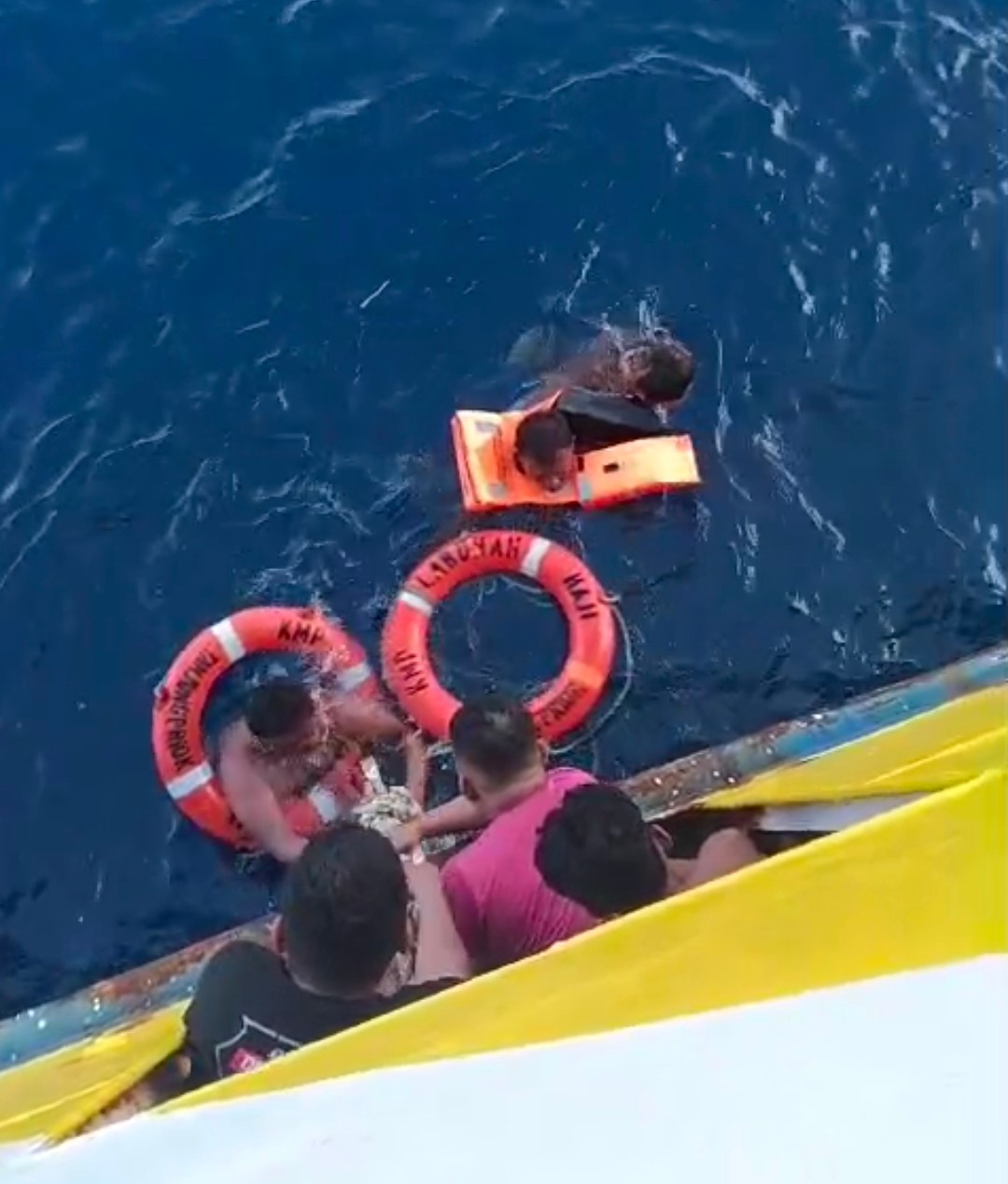 “Saya lihat sendiri dia meloncat. Kami bersama kru kapal langsung berusaha menolong, dan syukurlah korban cepat ditemukan,” ungkap Cristo.